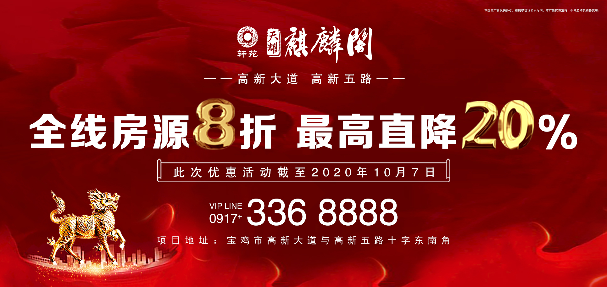 金秋时节,为答谢数万业主及无数客户的支持与厚爱,轩苑集团特推出“钜惠风暴、全线八折”的特大优惠活动,在助力宝鸡楼市全面复苏、推动宝鸡经济加速发展的同时,更为我市众多尚未安家置业的家庭提供了多样的选择和难得的机遇!