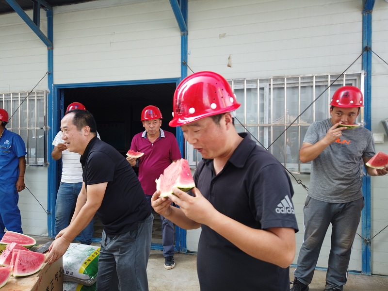 8月7日,集团副总经理袁大刚、工会副主席胡宗乾代表集团公司深入一线,为他们送去防暑降温物品,感谢对公司发展作出的贡献,并希望他们在做好本职工作的同时,注意劳逸结合、防暑降温。